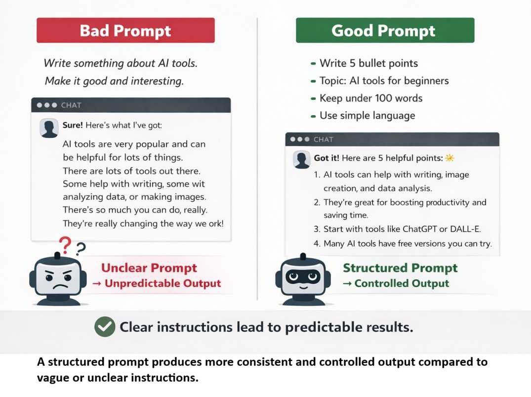 Introduction AI tools don’t always behave the way users expect. The same prompt can produce highly accurate output one time—and vague or incorrect results the next. This happens because AI does not actually “understand” your request. It predicts the next word based on probability, using a structured internal process. For … Read more